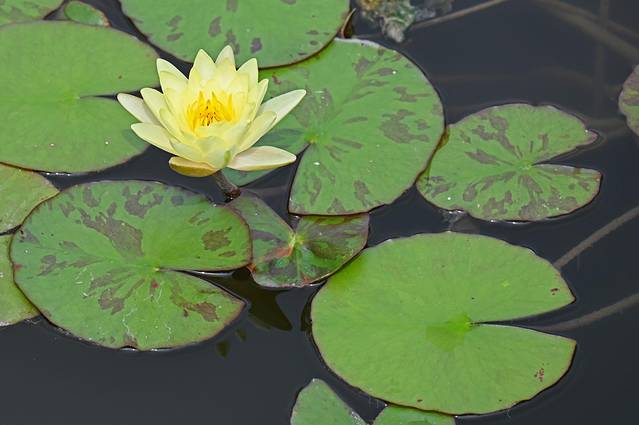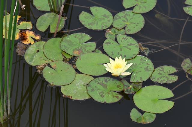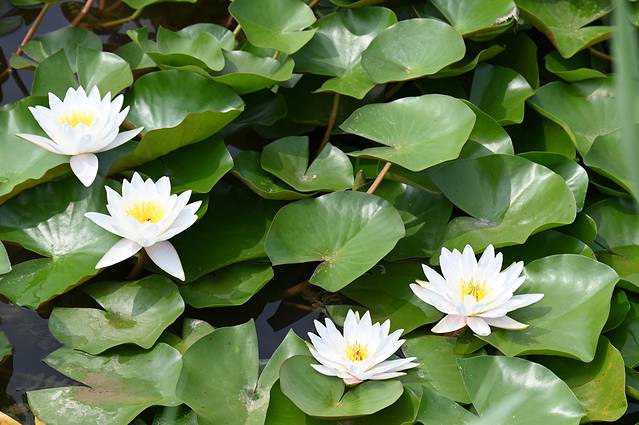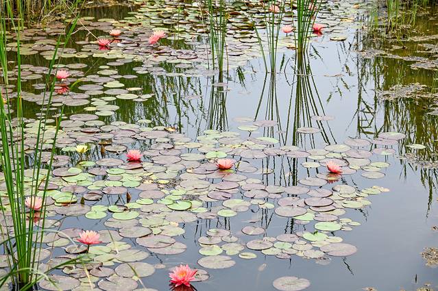 踏上木质步道前行,步道两侧是开满小花的湿地,水域中的各色睡莲这在盛开