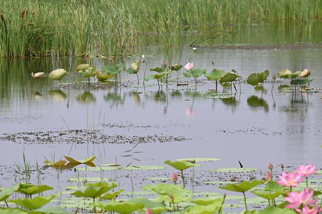 现在还不是候鸟迁西的季节,荷花塘还看不到介绍中的候鸟,但大面积盛开的荷花已经让人陶醉。