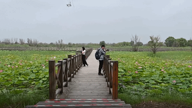这里虽然没有游船,但一条水上木栈道,可以让游人在莲花丛中自由的穿梭,近距离欣赏和拍摄。
