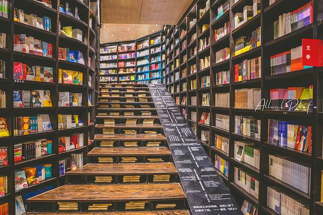 ▲成都钟书阁环境幽静,有品位的内饰风格和节约空间的LOFT二层设计更是我喜欢这里的原因,此外入口处通向2楼栈道的书籍阶梯凭借丰富的色彩和颇具空间感的设计已成为一个出名的网红拍照点