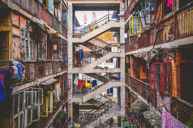 ▲鸳鸯楼其实是没有名字的,面面相对的两座楼梯与两侧的老楼形成不大的天井,像极了香港老电影里的建筑,成都的高速发展仿佛偏偏忘记了这里,任凭外部高楼大厦雨后春笋般崛起,这个僻静的角落带着它浓郁的怀旧情愫坚守不变,仍旧是过去的模样——如果要去切勿喧哗、不要打扰当地人生活哦