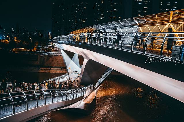 由于当时是热门打卡地,夜间来大桥纳凉的人非常多,所以如果想要拍好照片就需要寻找各种刁钻的角度以及摁快门的果断,当时还有人建议我凌晨再去拍大桥……