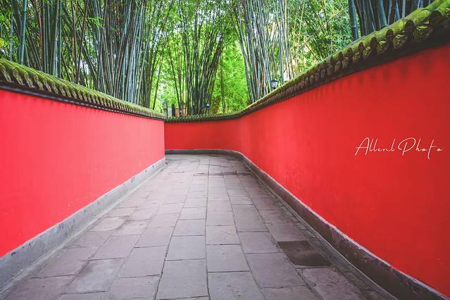 ▲在杜甫草堂发现与武侯祠异曲同工的红墙竹影