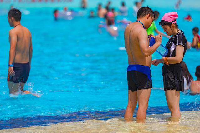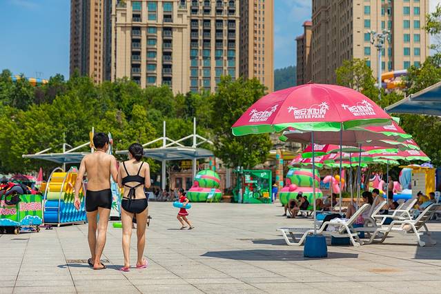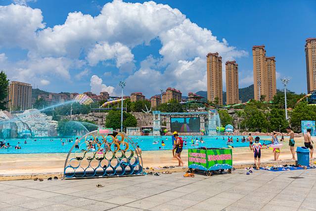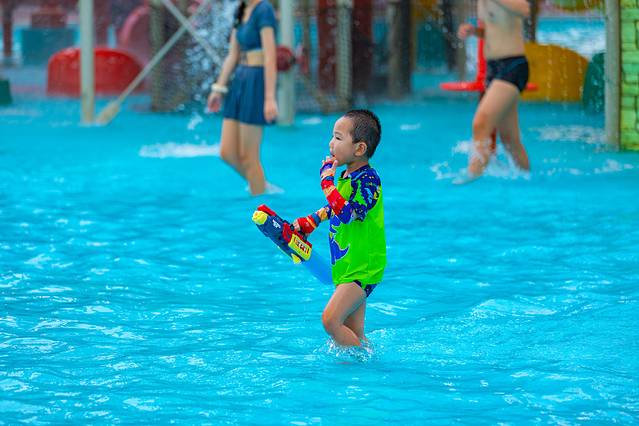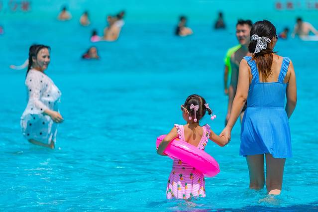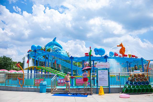 你看不远处,无论是情侣,还是亲子家庭,都迫不及待地走进这里,想要感受海浪的澎湃与起伏。此时,不论认识与否,都可以开启泼水模式,嗨玩一夏。