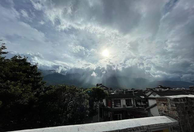 一定一定要等上城墙看一眼,绝美,我们不是在晴天去的(没见到最美的景色),但雨季中的大理也是别有一番风味,如图