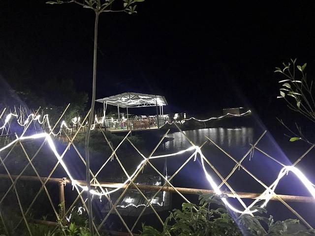 撩吧位于酒店一侧,沿湖建造,可以烧烤、吃饭,还有一个小型KTV~