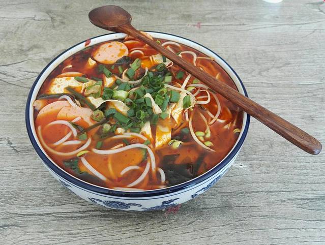 休息片刻,四毛老板一个电话帮我们点了两碗外卖排骨面