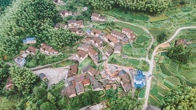 村里都是清一色的黄墙黛瓦,古道盘旋,景色秀丽,有古建筑、古道、古墓、古树,古朴而静美,层叠错落于翠绿葱郁之间。