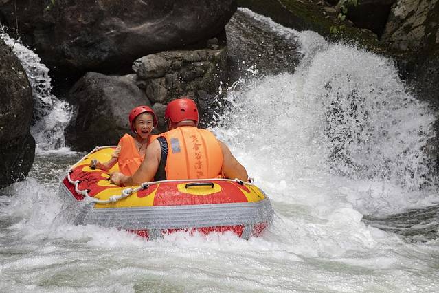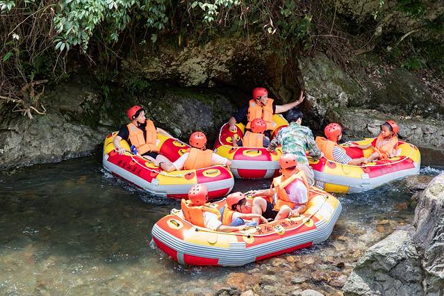 穿上救生衣,走进碧绿的溪水中,来一次和夏天的嬉闹,带着好朋友来黄金谷漂流降降温。