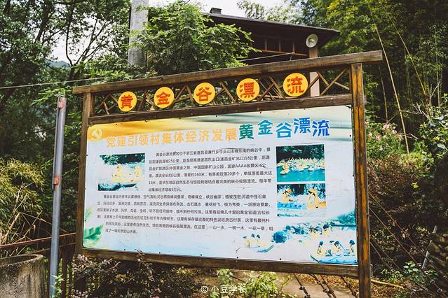 整个黄金谷漂流景区是一座融山、水、林、潭、峡、于一体的全新的景观。整个河道两岸都栽种有植被,丛林峡谷独具特色。乘皮筏艇顺流而下,两岸风景秀丽、群山环绕,悬崖壁立、林木繁茂,间或溪水潺潺,间或禅钟声声。