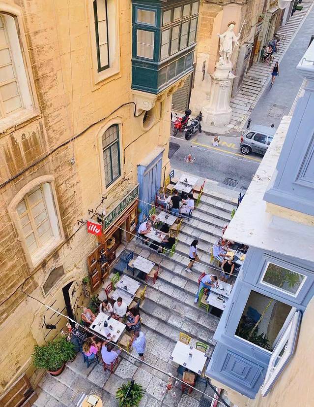 虽然整条街道虽然是景点,但依旧还是有很浓重的人文气息,总是标榜要像个当地人一样去旅行,在这里你可以像当地人一样散步,买菜,过着自由散漫的生活。穿梭在瓦莱塔的大街小巷,那些对你微笑招呼的人,那些老城里洒下的温暖阳光,那些黄色街道上彩色的窗台,当地人千篇一律的日常,都可以是充满了色彩的回忆。沿途两旁当地的人们坐在阳台上,抽烟的,喝酒的等等,路过许多的小店,进去逛逛,这样对的生活真的是再惬意不过了。