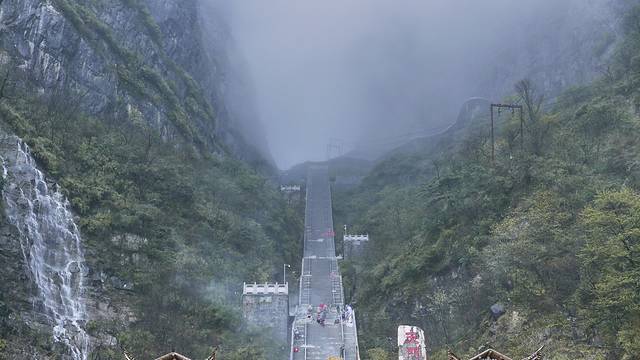 自驾的到天门山也可以两种方式都选择,前往扶梯的途中有一段还算不错的景致,停好车坐扶梯上山,再缆车到火车站,会有免费的巴士接驳扶梯停车场与火车站。