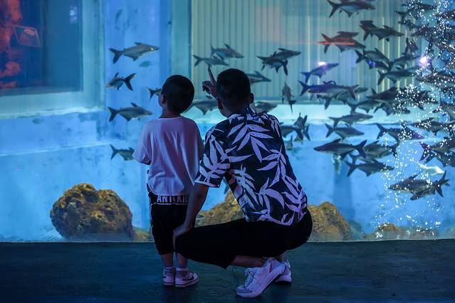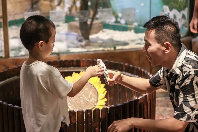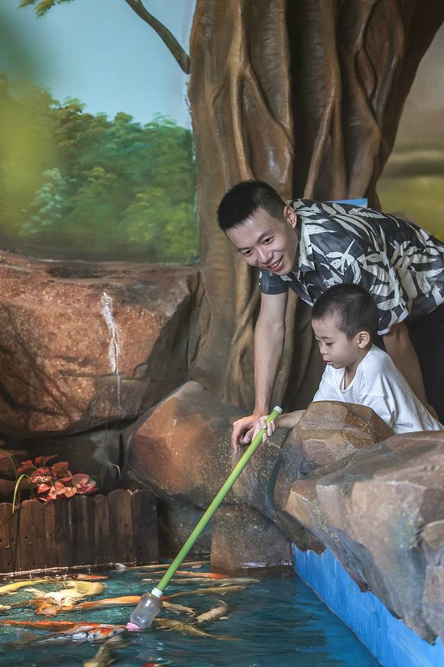 看到各种新奇的萌宠时,孩子突然对我说:“爸爸,我想在群鱼的环绕中遨游,在珊瑚的轻抚中漫步,在水母的起舞中,化身一尾好奇的美人鱼。我想像哥哥那样在水底遨游,与这些小鱼儿交朋友”。
