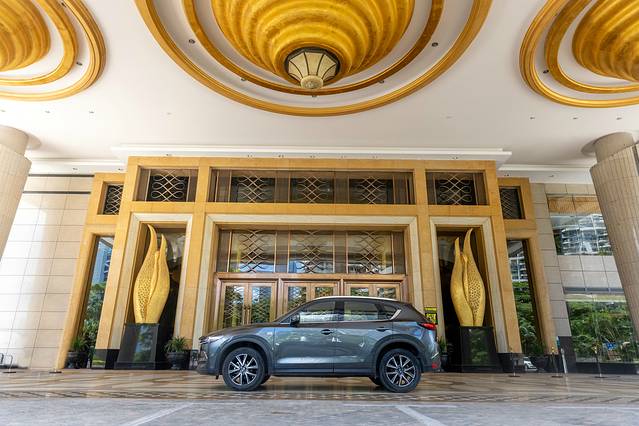 我们抵达目的地,尽管停车区域坡道较陡,但CX-5的AUTO HOLD⾃动驻⻋功能,让我感到安全和放心。
