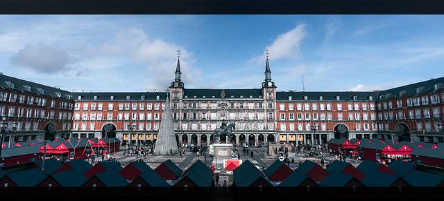 酒店房间窗外就是广场内部,我去的时候是圣诞前夕,马德里的圣诞集市就在广场内。房价900+起。