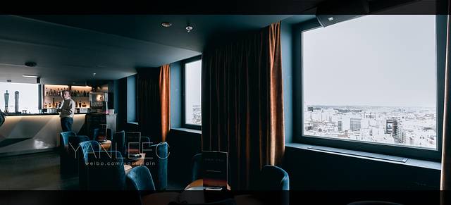 酒店这个楼顶酒吧配色我好喜欢~深蓝配驼色互补又高档耶~