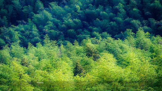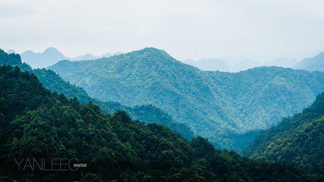 登上半山腰,举目远望,层层山峦被茂盛的丛林盖住了身子,各种各样的虫鸣声和着流水声构成了一曲美妙的音乐。远山含黛中,原来也有一种陡峭与险峻的美 。
