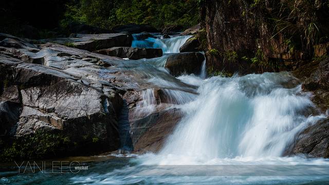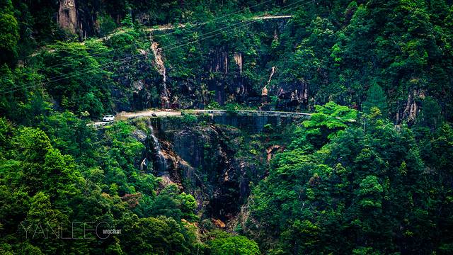 将车开过崎岖的山下小路,还没走近就已经听到了清晰的流水声。走进山涧,一处水流从悬崖峭壁夹杂着水雾一泻而下,这样的一个小瀑布遍布整条山路,没有多大的气势,却能体会到它的自然而然的气质,让人感觉每拐一个弯儿,就是一道亮丽的风景。也因为这无处不在的小瀑布,这崎岖的山路上也是经常在拐弯处路面湿滑,非常考验车辆的整体性能哦。