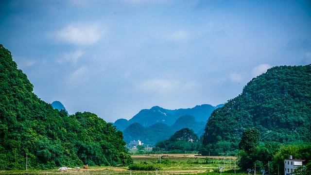 我特别喜欢英西峰林的喀斯特地貌。一路开过来公路两边就是展开的画卷:幽蓝的天空下是一个个层次分明的剪影,给人一种山的沉重感,而夏天的风啊,又是那么的轻盈,一阵轻风吹来,山更绿了,水更清了,让人忍不住将车速放慢,缓缓地行驶在这个安静的小路上。
