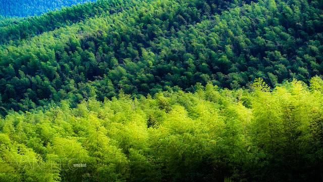 开着车,不急不缓的行在竹林中,空中时而传来几声鸟鸣,一切的一切都是那么的清新自在。在这里的自然环境中,连呼吸都异常的舒畅,大概是因为竹海面积太广袤了吧!