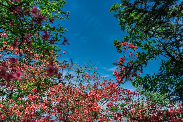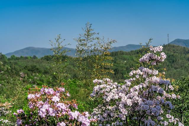 四月来茅田山,能观赏到漫山遍野的杜鹃花,有红色、粉色、紫色、白色等等,美丽至极。