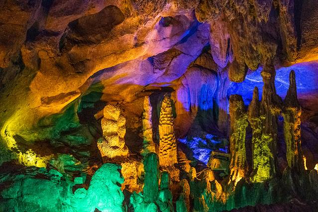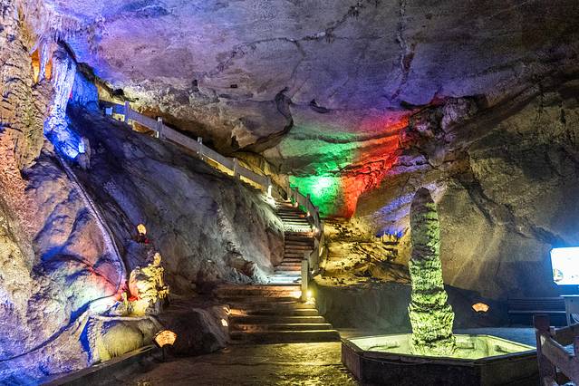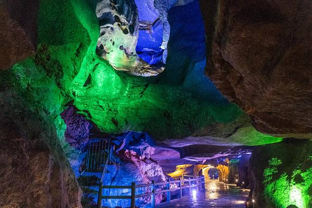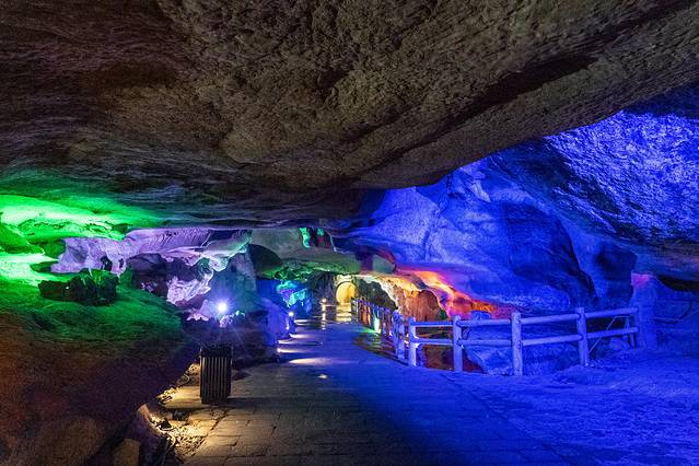 太极洞为石灰岩溶洞,长5.4公里,由上洞、下洞、水洞、旱洞组成,而且洞中有洞,洞洞相通,构成一个险峻壮观、神奇绚丽的大洞天,并且在现代声光科技的演绎下,更见梦幻和神奇。