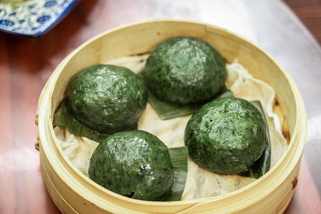 来广德必须不能错过的蒿子馍馍,它是流传于安徽宣城地区的特色青团,以蒿子、腊肉、米面等为原料混合起来制成蒿子面,再用蒿子面做成馍形放到锅里蒸熟。蒸制出来的蒿子馍馍,气味芳香,口感柔软又富有弹力,还具有退虚热的功效。