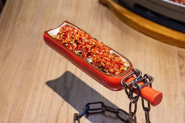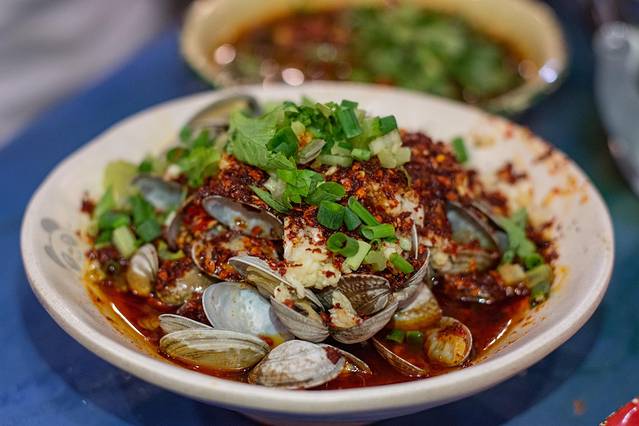 当然,进店后还是比较推荐点一些店内的小碟。小土豆、脑花、火锅粉、牛肉、花蛤和鸭血等都是非常值得推荐的。每份小碟几乎都覆盖了满满的辣椒,过油之后辣椒的香气渗入食材,每一口都恰到好处。