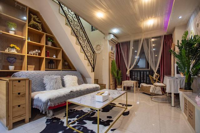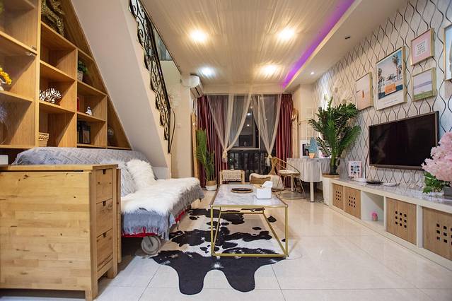 民宿是由一套两居室的复式套房精心改造而成的,两个房间位于二层都有着不同的装修风格,一共可以住下四个人。客厅在一楼内也很宽敞~尤其是沙发,可以躺在上面看电视。此外,民宿内洗衣机、热水器、微波炉等应有尽有哦,在这里很有在家里的感觉。
