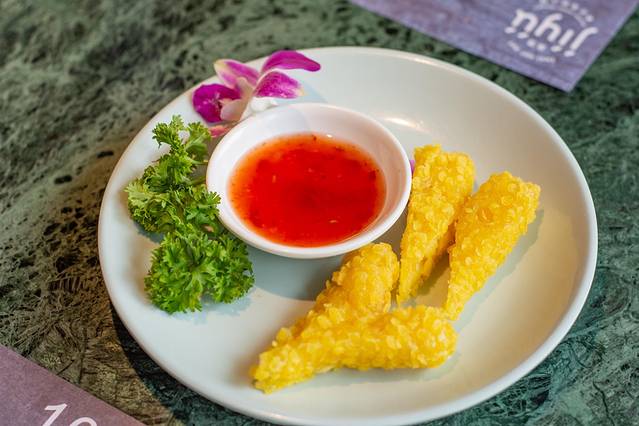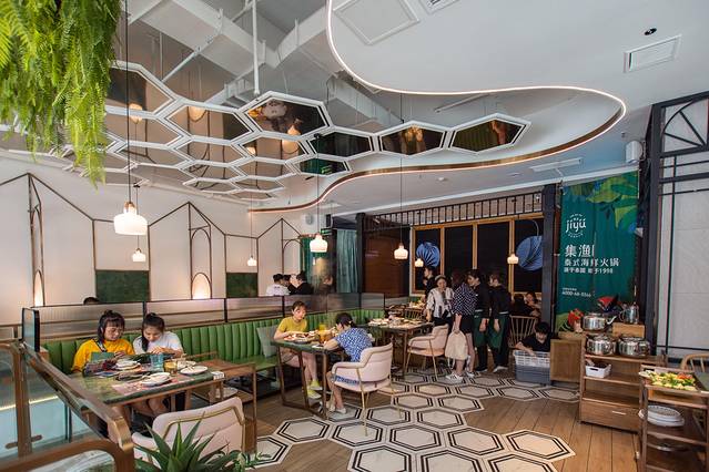集渔·泰式海鲜火锅就在成都市中心的闹市区,春熙路太古里的边上,交通上是再方便不过了。店内的装修也有着很浓的东南亚热带风情,除了火锅这一正餐,店内的吧台有提供免费的甜点和水果。