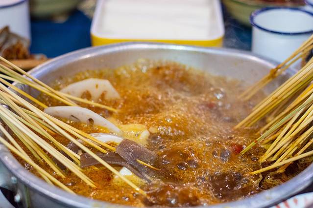 麻辣烫应该是在成都必吃的一道美食了,走在成都的街头总是会在下一个拐角不经意的发现一家麻辣烫的店。吃过了你们家,还是比较推荐“马路边边麻辣烫”。这是一家天天都有人排队的网红麻辣烫,如果要吃,可以定要赶个早了。