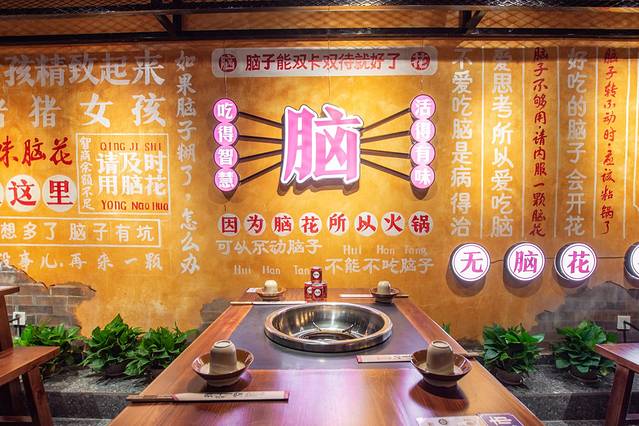拍照自然是重点,但是饱餐一顿地道的重庆美食也是不可或缺的。来重庆,不能错过的自然就是火锅了。穿过解放碑拥挤的人潮,在得意世界88号C区的负一层里来到了朋友一直推荐的挥汗堂脑花火锅。