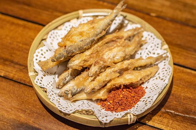 除了鱼锅,店内还可以点一些凉拌鲫鱼、小酥鱼、油炸小河虾等其他菜品。