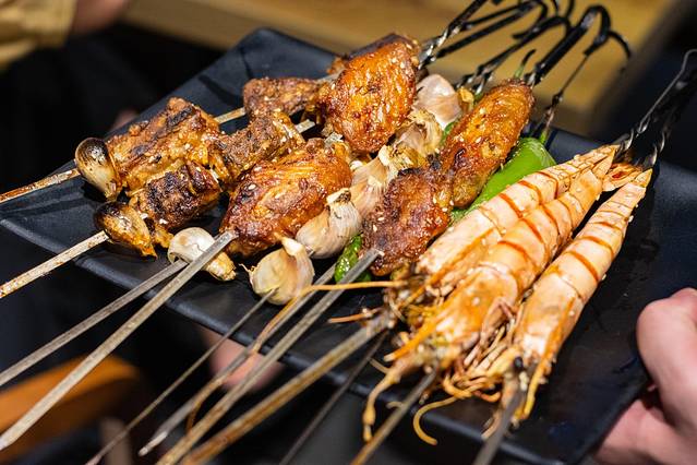 在店里,牛羊肉肯定是撸串的必选,除了这些鸡翅、掌中宝、大蒜和阿根廷红虾也是十分值得推荐的。尤其是焖烤之后的红虾依旧保持着鲜嫩的口感,虾肉中的水分也没有过多的流失,这是一般烧烤中可无法品尝到的滋味。