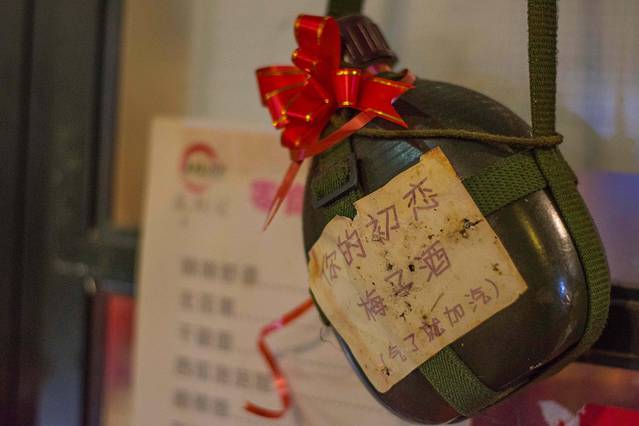 对于我而言,没上菜之前自然是要先拍拍照。店内的装潢有些复古,挂在墙上的老自行车和藤编壶总是容易让你想起上世纪老重庆的生活市井。当然,除打了点感情排之外,刚进门处的新潮主题墙壁也总有一句标语可以get到你的点。