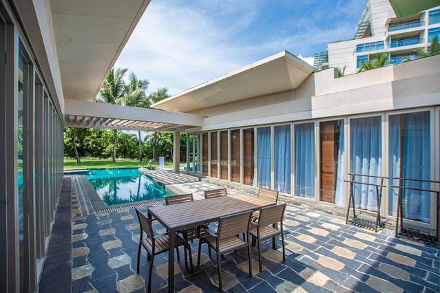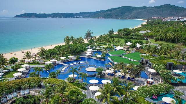 美高梅度假酒店占据着亚龙湾的核心位置,酒店内有泳池也有一片宽阔的海滩的。酒店除了有各种不同配置的泳池客房、海景客房和高尔夫客房之外还有适合亲子出游的套房。