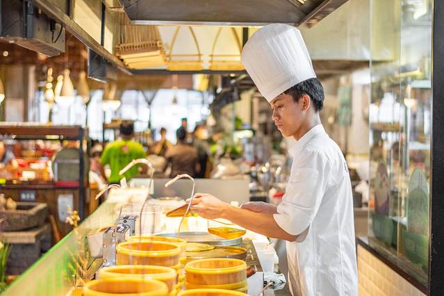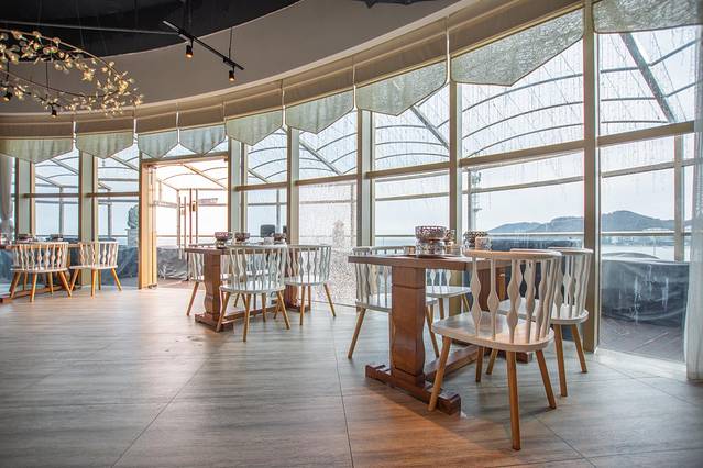 看着大海吃海鲜,在这应该是许多人去滨海城市旅游时最想要的一种体验了吧?在大东海的一号港湾城里就有一家坐拥270度观开大海的自助餐厅。