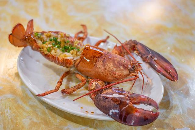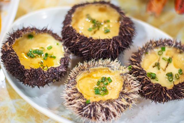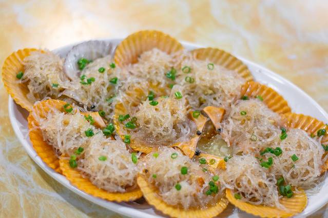 龙虾和海胆应该是吃起来比较过瘾的了,尤其是一只龙虾两个人分,剥开壳后是紧实的龙虾肉,配上虾肉上的蒜蓉真的是极品。另外再提醒一点,吃海胆蒸蛋的时候一定要沿着海胆壳的壁去好好刮一下,因为那一部分才是最有营养的。当然,也不能错过粉丝蒜蓉蒸扇这道美味。