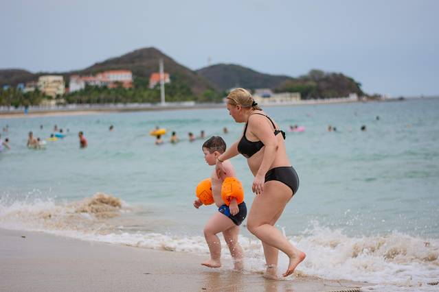 其实在大东海,俄罗斯游客的数量可能会远远多于国内的游客。出行的日子并不算完美,没能看到大海和天空最美的一面。而且相较于亚龙湾,大东海的体验感也比较差,这里游客数量多,沙滩的卫生条件也比较差了。