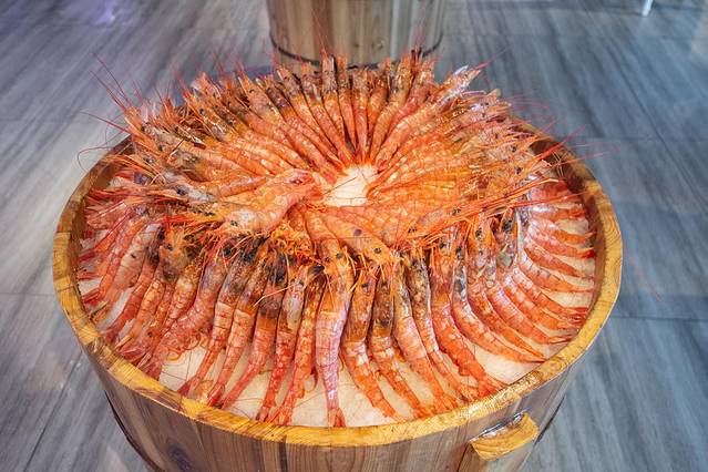 在餐厅里,菜品都是自助的。除了各色的海鲜和凉菜,还有精致的糕点和日式料理。而海鲜中尤以虾、鱼和各种贝类居多。日式料理就不必说了,本来就是以海鲜为主要的原材料了。