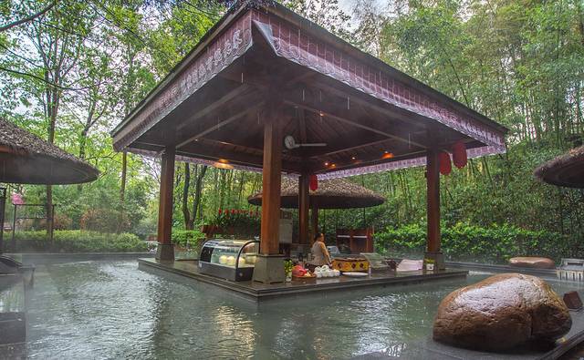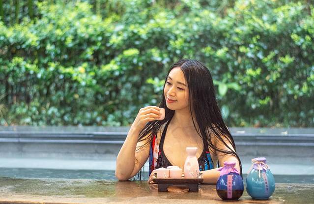 你是否也曾想过,在万亩竹海的深处泡一次养生温泉呢?这仿佛想象起来并不是很搭,毕竟难以将千层的竹海“碧波”和蒸腾着雾气的温泉汤池联系在一起。尤其是在雨后,坐落在江南苏浙皖三省交界之处的山巅竹海总是在细雨之中笼罩着层层淡淡的雾气,仿若仙境。正是在这沐浴着淡淡云雾的竹海深处,藏匿着60多个经典温泉泡池的御水温泉。除了一般你能想到的以药物养生和鲜花为主题的传统汤池之外,这里还有加着酒糟喝着酒的,带着浓浓酒文化的汤池。或许你曾经有过这样“泡在酒中喝着酒”的独特温泉体验,但就我这个来自温泉古都福州的南方人,则是第一次体验如此独特的温泉项目。