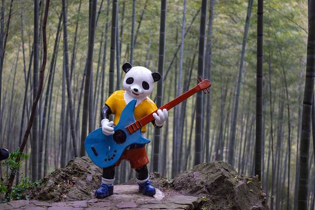 从竹文化园内走过,沿着竹林间的栈道可是往低处走,路边开始有了几只熊猫的塑像。没错,再往前应该就是绝大多数人来南山竹海的目的了,去一睹熊猫馆内两只大熊猫的生活日常。