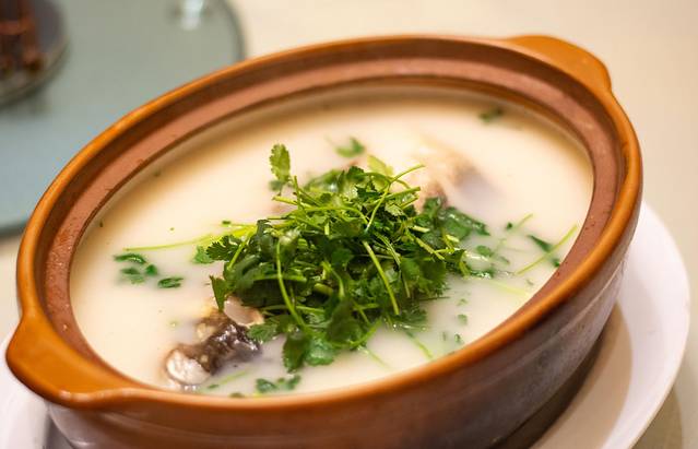 在河湖密布的水乡江南,餐桌上怎么能少得了鱼鲜呢。来天目湖,最推荐的一道菜当属鱼头汤了,这是一道在出发前小伙伴就一直安利的绝佳美味。酒店内的砂锅鱼头汤用的是产自天目湖内的鲜鱼,经过炖煮鱼汤呈现着乳白色的汤池,细嫩的鱼肉嫰而不腥,这的确头道暖暖胃的好菜了。