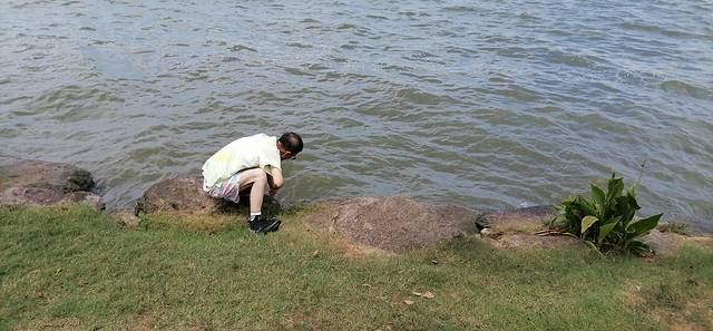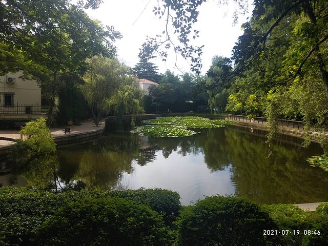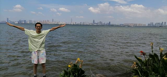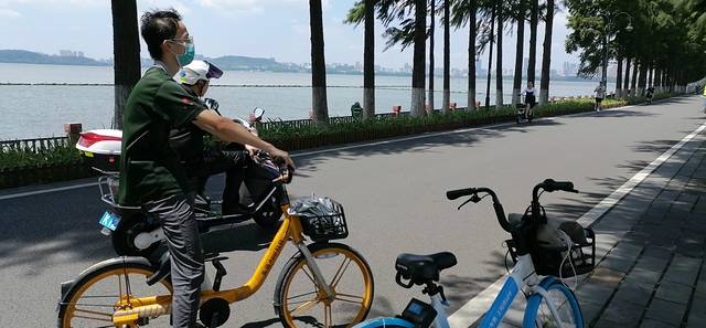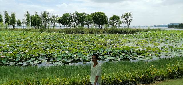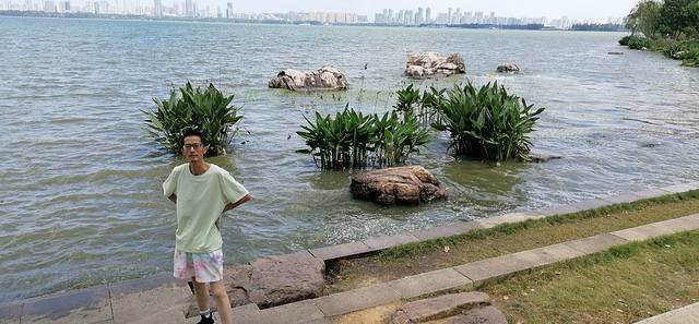 按预定计划去东湖逛逛了。可东湖很大是个区域,在地图上查找跟人询问也是一知半解,只好依先前路线走吧,也许是对是错反正就这样了。做上去东湖磨山公交,绕武汉老城区长江大桥一些景点,我当初记忆的或不记忆的一古脑都经过了,是幸福还是耽误也无从查起f的,和孩子讲讲武汉的变化。近2个小时终于到了磨山,植物园也到了,原来是在一起的,不经历是不知道的。随着人流漫步磨山,那灸人日头烤的人发昏,没有目标的寻找,磨山到底是什么样?走了一会儿希望出现了,眼前开阔笔直道路伸向远方,我和孩子各骑一辆共享单车愉快开心,那沿路的风景柳林湖泊在蓝天白云映衬下如此动人,那流动的云彩蓝的让人不敢相信的色彩,在风儿的吹动漫步。湖连湖湖套湖在湖中骑行,骑行在湖中,宛如画中一般。休闲娱乐,荷花绽放,顽石突起,水波渐渐,草叶青青,美极了,极美。据说东湖环湖之道有120公里,外环与内环,外湖与内湖,环环相扣,反正我们是误入,顺着走,也不知如何走,骑行12公里耗时1小时多,终于到了我曾经领孩子去的东湖海洋世界。那是我们全家第一次近距离欣赏海底生物,也是武汉第一个海洋世界,为此之后,其他城市海底世界从来不去了,现在回想起来,这么多年过去了,没想的是在不经意间又回来了,这就是人生,是经历,是一种不可遇见的情感,十几年我始终可以记忆的,难以消失的,是圆满是幸福是记忆,此处也是终点,出去便是省博物馆,所谓-----踏破铁鞋无觅处,她已在灯火阑珊处。