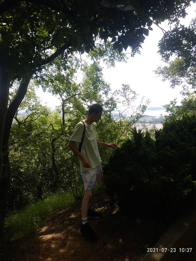 太平山位于动物园旁边,也就是中山公园后侧。动物园正门就是太平山,也即是一战博物馆,遗址地质博物馆。观山欣景回忆吟听过去的事儿,革命需要传承和发扬,那我和孩子先上第一课吧。因疫情需要限量,先登山再欣景最后学习。太平山其实就是一个山体公园,不高,依山势而建,远眺大海,近观内情,是岛内屏障,居高临下,目空一切。拾级而上,两旁植被丰甚,清新空气夹杂青草的气息,树木葱绿,散射的光线从树叶间落下来,热热的感觉。平缓而有坡度台阶伸向远方,岔道时而出现,不是下山就是上山,时时碰见休闲的人,也遇见参观学习历史的学生们,利用暑假来,既登山又学问好乐趣。来到平台处,小小乐园开播了,纳凉谈天闲逛极爽。圆形炮台默默在叙述忘日,永不言败。