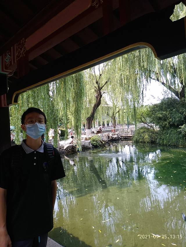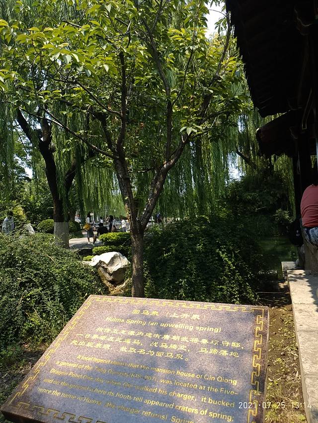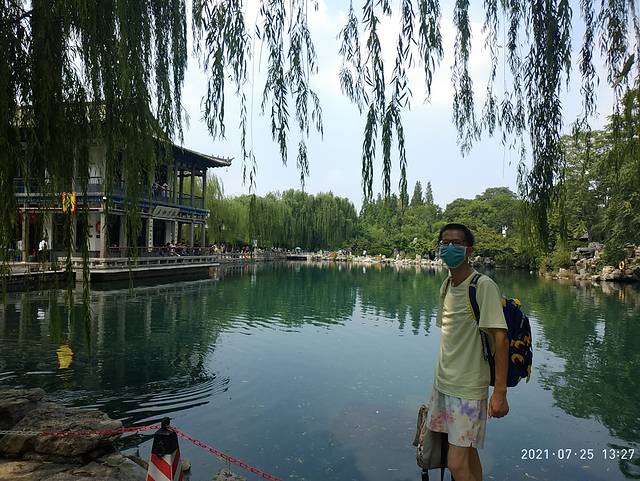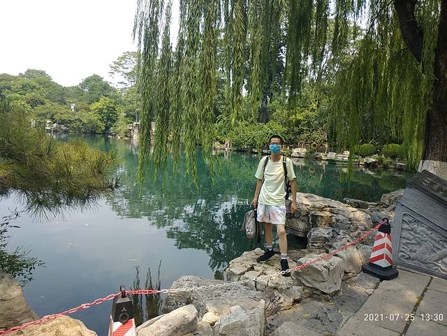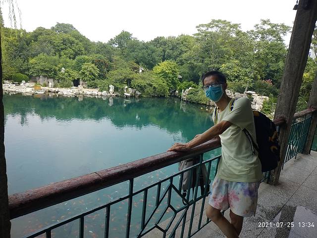 6点20分火车,近11点到,济南空气弥漫热气,热浪迎面而来,人也变的多了,心也莫名的烦了。在短短的近6小时之内,近距离玩耍济南三大景点也是幸事,为什么呢?而是近的缘故吧了。吃完午饭就顶着烈日,这儿的天真的不一样,让人烦透,发燥,心情不爽。同样的蓝天不同样的心境,公交临近景点没想如此堵的厉害,一动也不动,如蜗牛慢爬,趵突泉在五龙潭前面,距离不远却没有想到。车也热人也热气候热等候更热,焦急无用,慢慢滑动终于移到车站。下车走几步就到五龙潭公园,进门一抹绿消退了心中的热,青枝绿叶融化了烦躁,来到湖边青青的风吹走了不安,好惬意啊!好大一片水城,被亭台楼榭,花鱼虫鸟,怪石柳枝环绕,极美极靓。登上亭台展望周围,前方相隔几米之远就是两个玩水的射击池,小孩子不以乐呼玩的开心,叫喊着,阵阵清凉迎面而来。再前方就是绿地,有休息的石凳,道路沿的绿地伸向深处。秦琼祠,茶社,名人纪念像,革命博物馆,自然与人文相互交融。