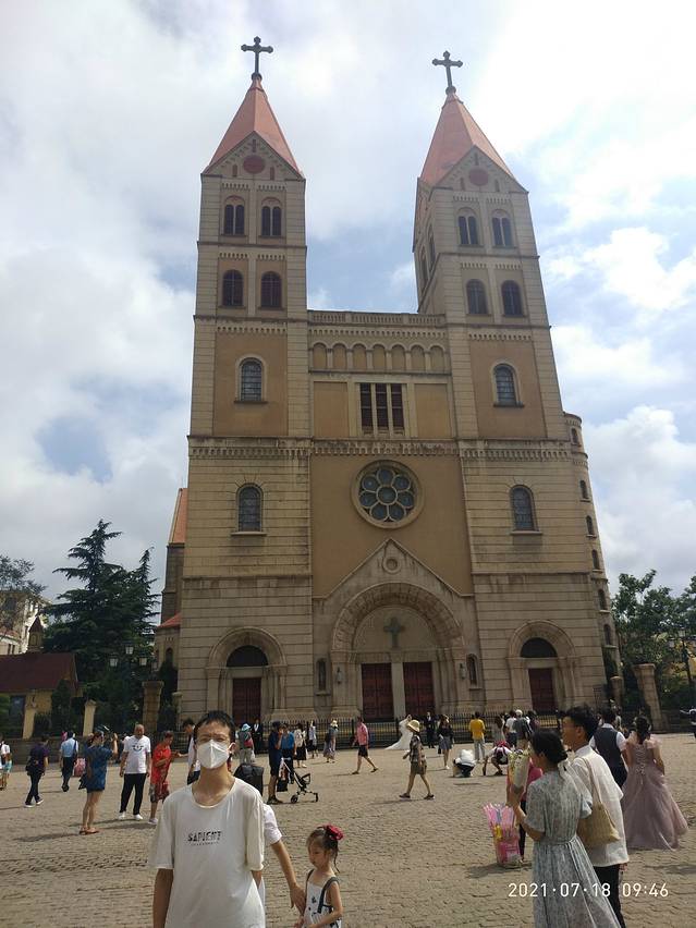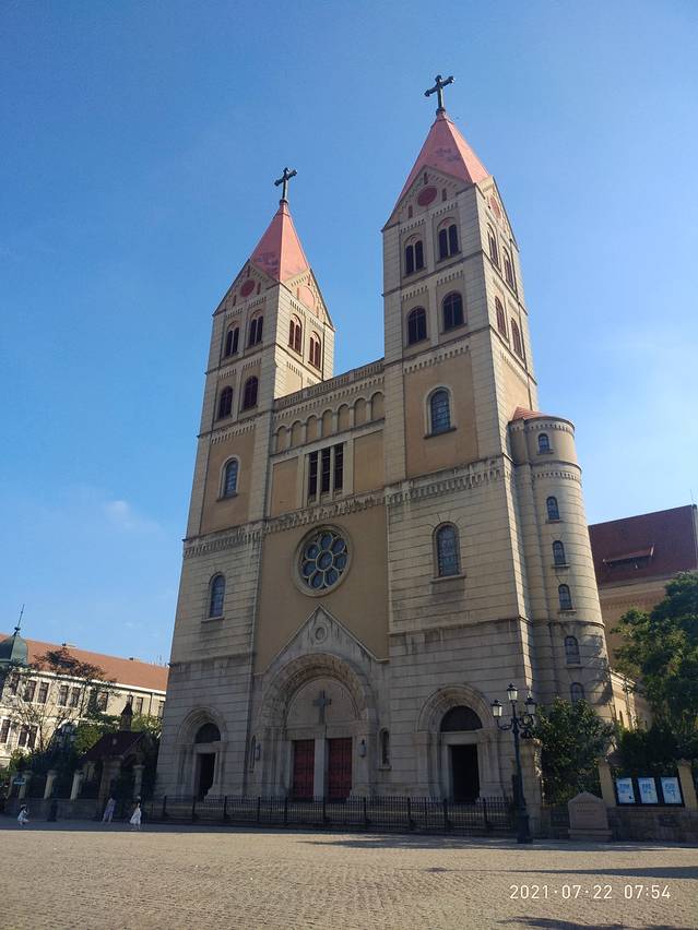 放下一切,离开出门拐弯就到了中山路,原来就是这条路--保定路。当初在室友邀请下吃海鲜,曾经来过这,只是当时有点暗有点偏,现在晚上照样如此,没想到时隔几年故地重游--感概时光力量/中山路前接栈桥,后接德国风情街,沿街岔路极多,保定路既一条。当初想住我曾经的,可物是物,人却不见,有些遗憾,不存在了。街面不大,也不算长,在青岛是必来之处,热闹非凡,有教堂,栈桥,大学路,文艺范时足。教堂位于中部,出门走几步到了,沿缓坡慢慢爬,那矗立独特建筑,在逆光的折射下异常刺眼,高大,有型,无与伦比,旁边照婚纱在古老而印记面前留下点点回忆,不管如何拍都是美,顺光逆光都有不同情调,极美,老样子没变 。