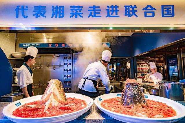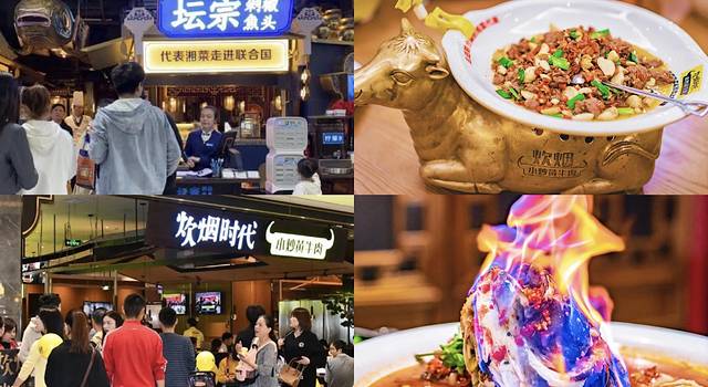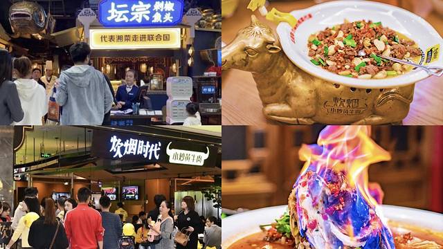 可能因为太喜欢橘子洲和湖南省博物馆,参观的时候不觉得饿,离开后才感觉到好饿,生活需要仪式感,旅行就更需要啦,第一顿饭,必须要符合我们外地人的气质,更要选本地的特色,当地朋友推荐了一家正宗湘菜:炊烟时代小炒黄牛肉。据说,生意超火爆,今天必须去打卡