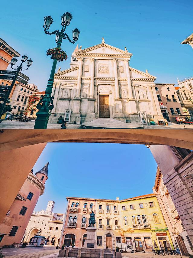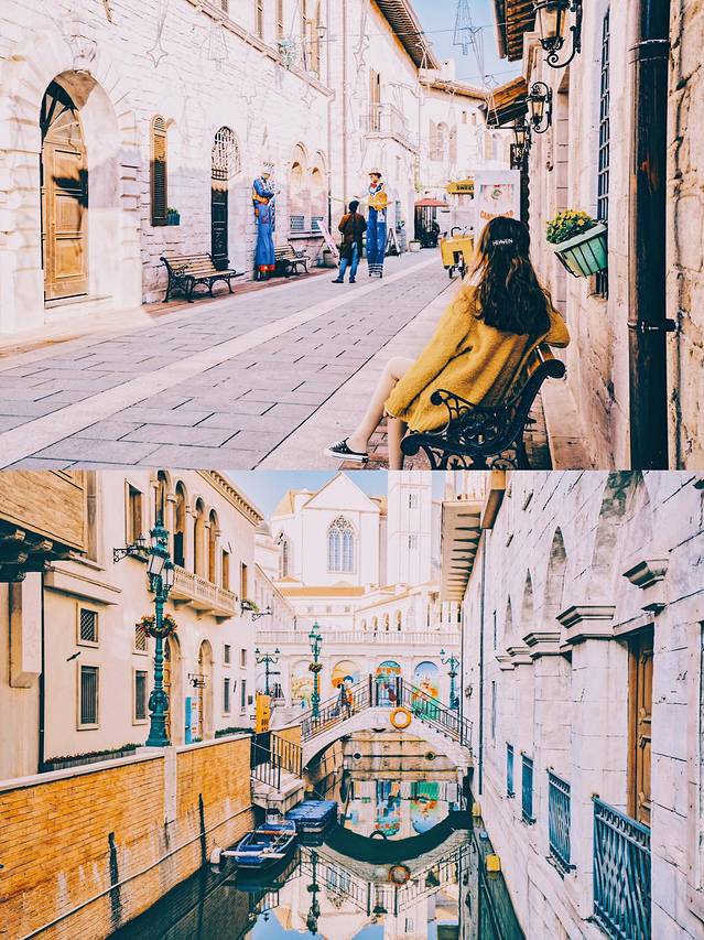 现在去只有意大利小镇试营业了,地方不是特别大,我们去的时候人挺少,很空旷,想怎么拍就怎么拍,不用担心有背景板,拍婚纱、拍广告片的挺多。