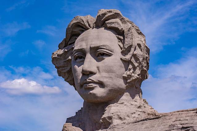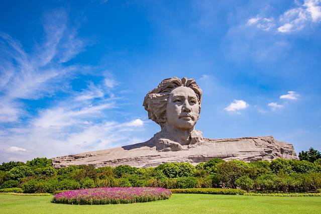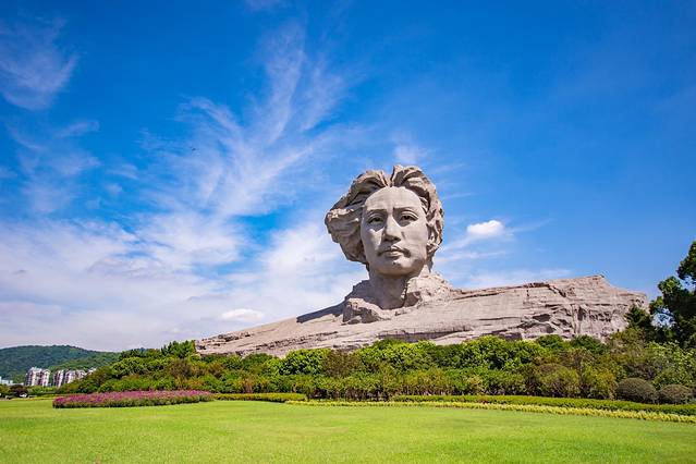 大多数人都是直接坐到终点,然后再往回逛。我们也选择坐到终点,再往前走大概5分钟就是毛爷爷雕像,拍照打卡证明我来过。